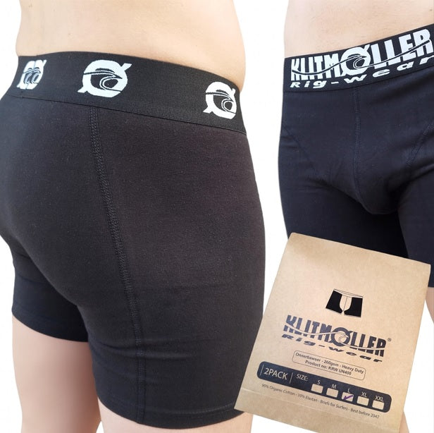 Materiale og kvalitet: Vores "onnerbawser" er lavet af 90% økologisk bomuld og 10% elastan, hvilket sikrer en utrolig lang levetid. Vi har valgt at bruge ekstra kraftig 260 grams bomuld, som er blevet testet og udviklet af surfere på den danske vestkyst i samarbejde med vores bomuldspinderi i Tyrkiet. Resultatet er et produkt, der kan klare mere end 100 vaske uden at miste sin pasform.