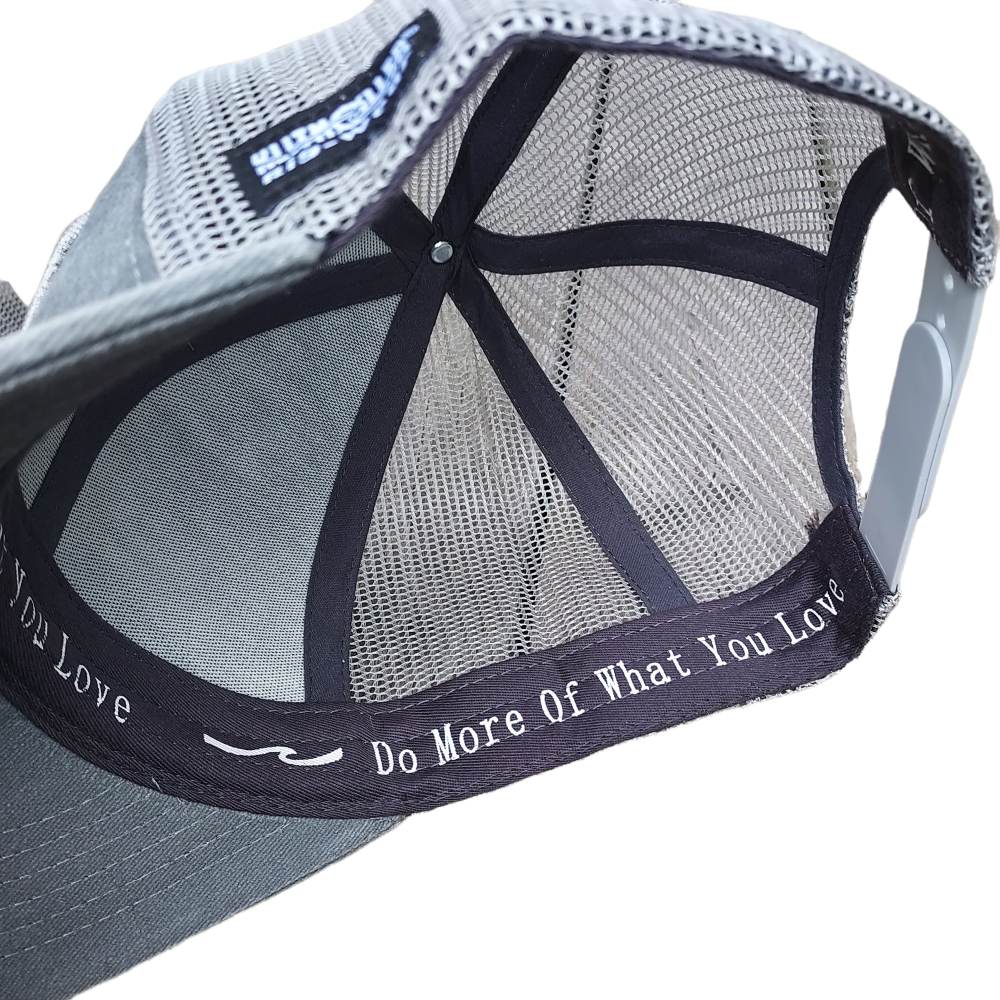 Oplev komfort og stil med vores lækre cap, der pryder vores legendariske bølge logo i 3D broderi på fronten. Denne cap er skabt med en front i forvasket 100% bomuld, hvilket giver et blødt og behageligt materiale, mens mesh materialet bagpå sikrer optimal ventilation på varme dage. Med en variabel lukning i bag, passer denne cap perfekt til de fleste hoved størrelser, og giver en tilpasset og sikker pasform. For en ekstra inspirerende detalje finder du vores motto "Do more of what You love" trykt i svedbåndet, som en konstant påmindelse om at leve livet fuldt ud.